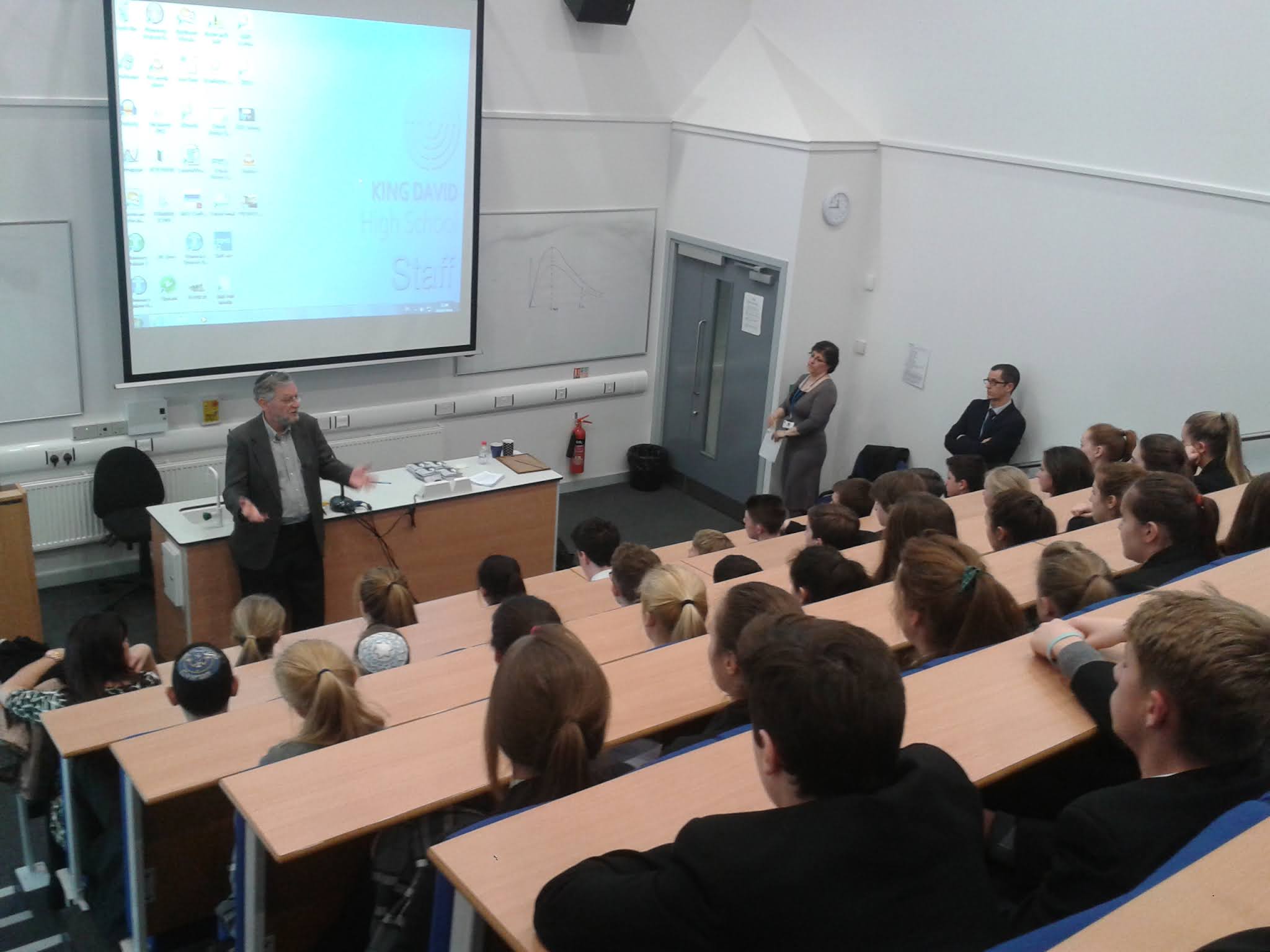 Liverpool, March 2014: Arnold Roth describes the Malki Foundation's work to a student assembly at the King David School |